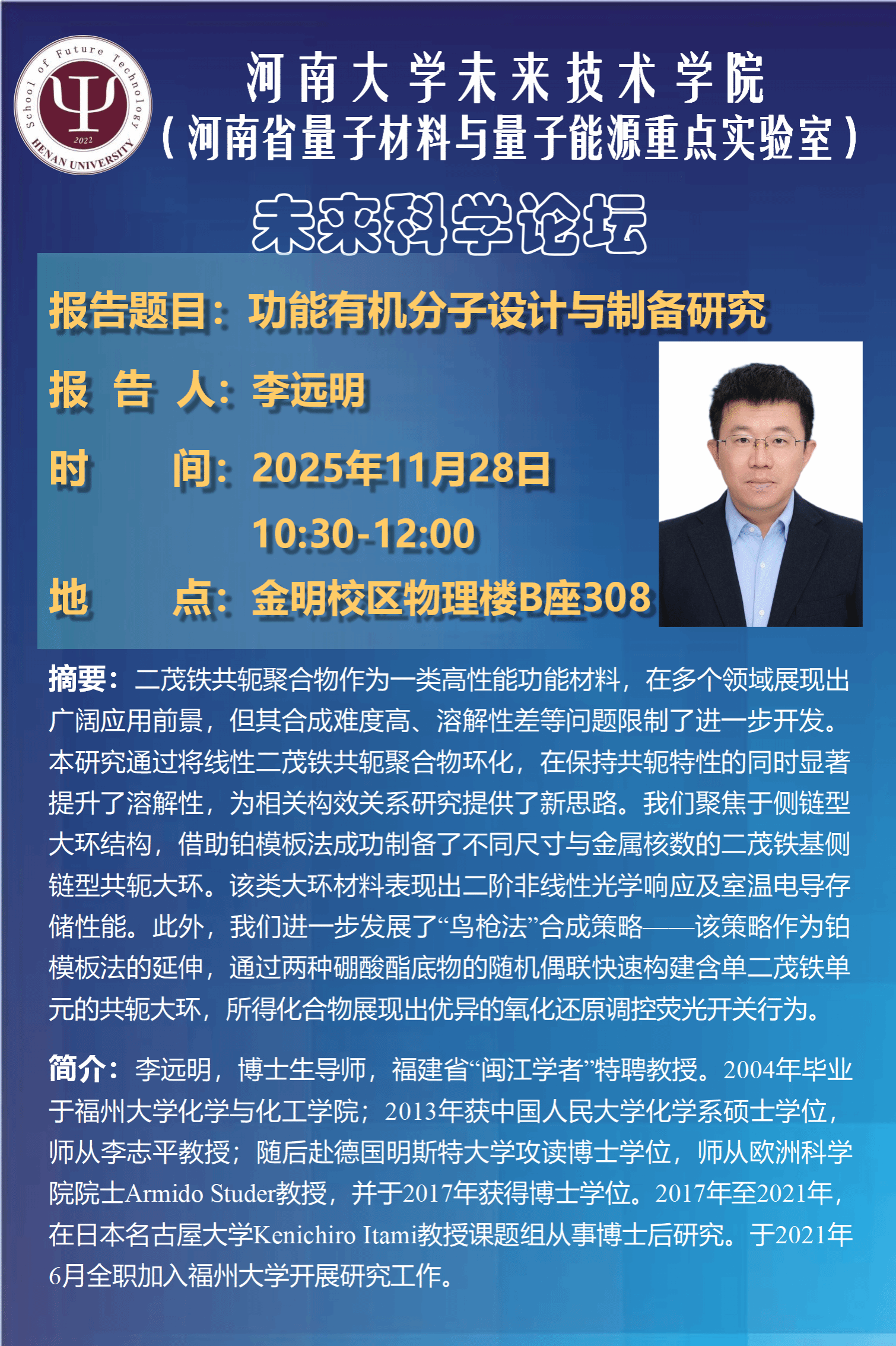 李远明:功能有机分子设计与制备研究(2025.11.28)